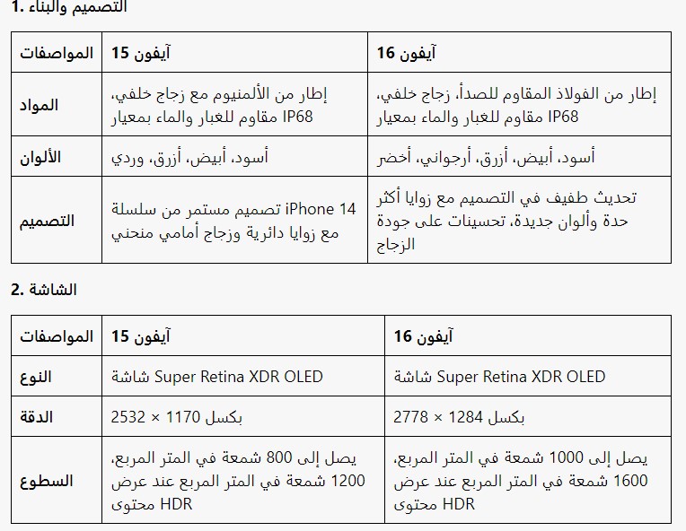 مقارنة شاملة بين آيفون 15 وآيفون 16